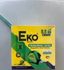 بدنه از جنس ABS نشكن و ضد ضربه گيره با صفر اتومات و اتصال سه پرچ گيره مگنت دار قوى جهت سهولت بيشتر تيغه سفيد رنگ با روكث مات و ضخامت بالا چاپ تيغه بر اساس مقياس متريك و كلاس II متر 5/5 متری اکو سلامت فیزیکی و ضمانت اصالت