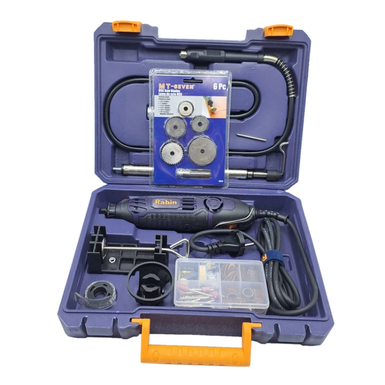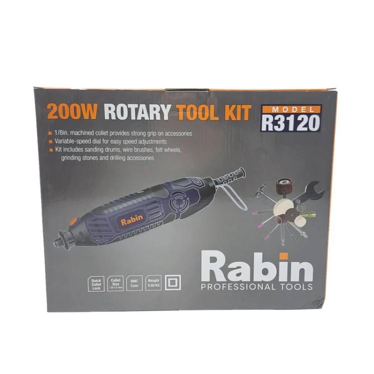 فرز انگشتی 200 پارچه رابین « R3120» یکی از مدلهای با کیفیت و کارآمد تولید شده توسط شرکت رابین است. این مدل بسیار با دوام و با کیفیت و البته خوش دست طراحی شده تا بتوانید از آن سالیان طولانی استفاده کنید. خوش دست بودن دستگاه فرز انگشتی رابین موجب شده تا در استفادههای طولانی مدت، اصلا احساس خستگی نکنید. فرز انگشتی رابین با قطعات مختلف و متنوعی همراه شدهاند که همگی بسیار منظم و مرتب در جعبه قرار میگیرند. پس از استفاده از فرز انگشتی میتوانید تمامی قطعات را در جعبه قرار دهید تا از گم شدن آنها جلوگیری شود. فرز رابین با موتور 200 واتی و قابلیت تنظیم سرعت تولید شده است. با وجود این موتور خوب و البته قطعات همراه فرز میتوانید انواع کارهای مختلف را با فرز انگشتی رابین انجام دهید. با استفاده از این فرز میتوانید کار فرز کاری، ساب زنی، حکاکی و ... را بر روی متریالهای مختلفی از جمله سنگ، فلز، پلاستیک، چوب و ... انجام دهید.