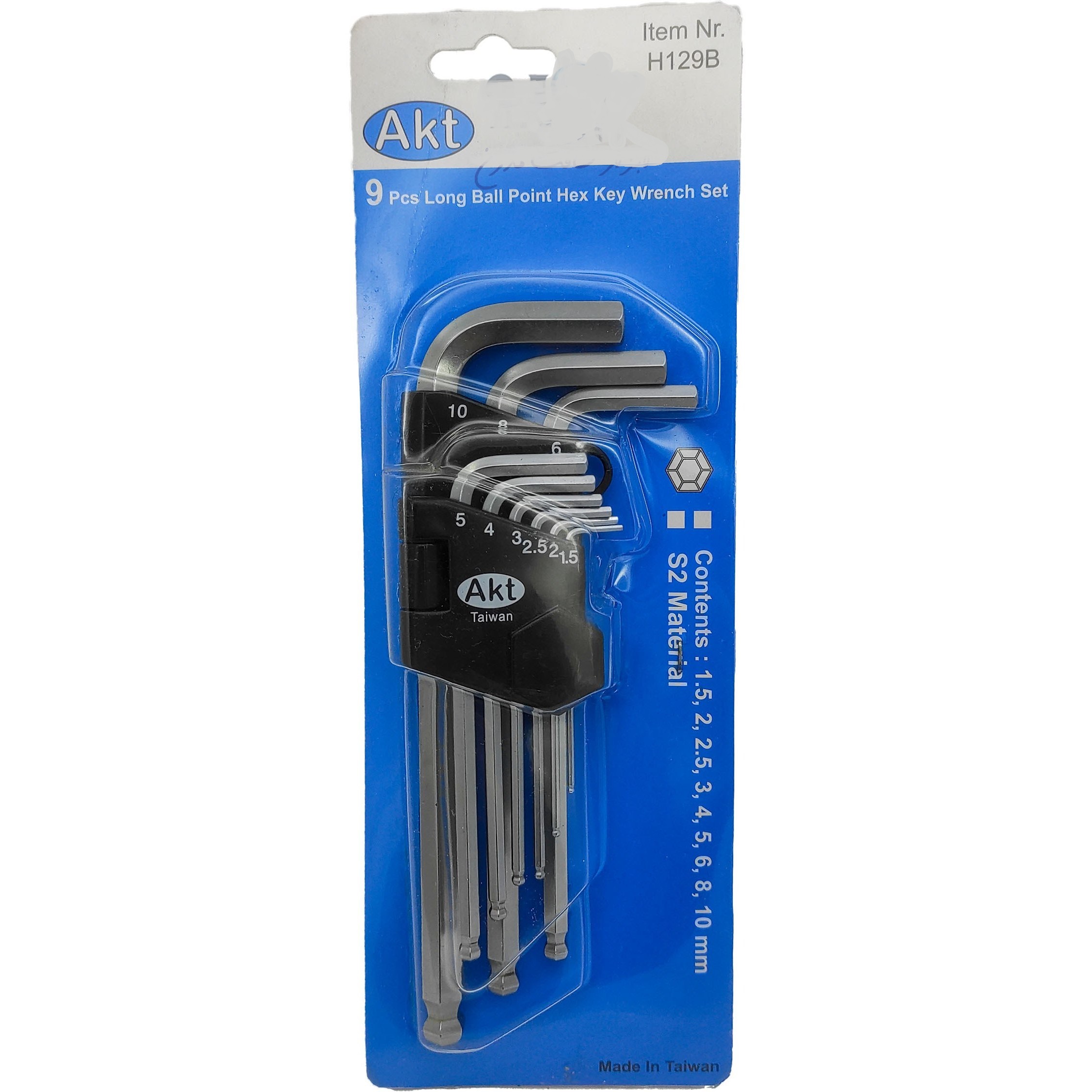 جدول مشخصات فنی ست آلن کارتی سرگرد بلند 9 عددی 1.5 تا 10 میلیمتر AKT مدل H129B