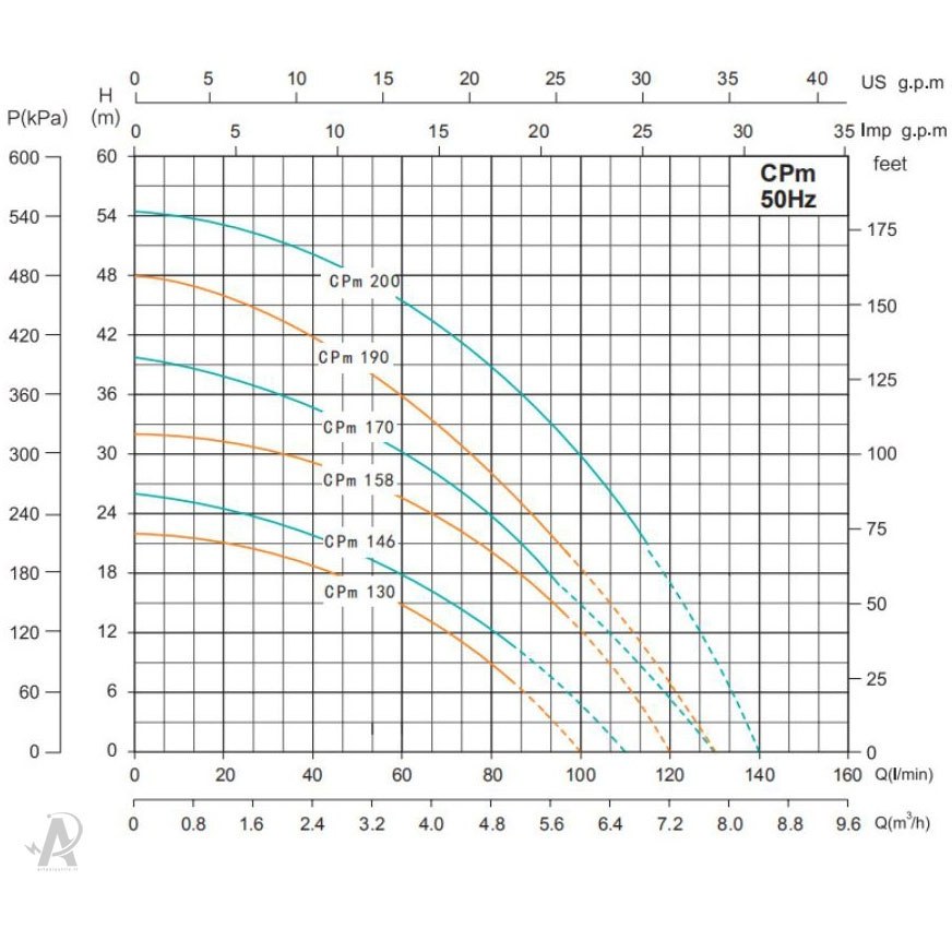 جریان موثر آب (لیتر بر دقیقه)