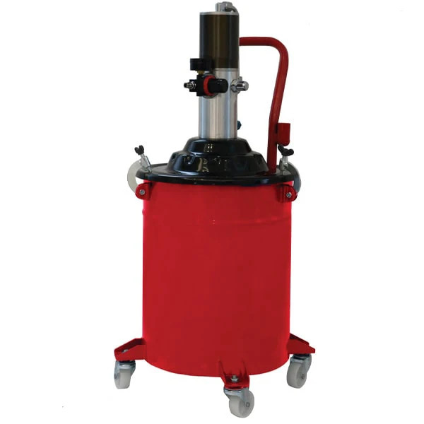 گریس پمپ ۲۰ لیتری استرانگ مدل STG۶۰۲۰ گریس پمپ دستگاهی است که برای روانکاری و گریس کاری انواع یاتاقان ، چرخ دنده ها ، بلبرینگ ها و همچنین برای تمامی خودروها و دستگاه های صنعتی بکار میرود. گریس پمپ بادی یا سطلی ۲۰ لیتری استرانگ وزنی برابر ۱۵.۳ کیلوگرم دارد ابعا بسته بندی برای این محصول ۴۴۵*۴۴۵*۸۳۷ میلیمتر و نسبت فشار پمپ: ۵۰:۱ است. گیریس پمپ پنوماتیک استرانگ فشار ورودی برابر ۰.۶ تا ۰.۸ مگاپاسکال و فشار خروجی معادل ۳۰ تا ۴۰ مگاپاسکال را دارا میباشد. منظور از روانکاری پمپ ها چیست؟ پمپ ها معمولا تحت فشار ناشی از عملکرد پیوسته و نیرو های شدید قرار دارند. به همین خاطر، کیفیت مناسب روغن و روغنکاری به موقع آنها، یکی از نیازهای اولیه برای عمر طولانی و عملکرد بدون مشکل آنها میباشد. روغن مصرفی در عملیات روغن کاری نباید حاوی ذرات خارجی و یا اسید های شستوشو باشد. مزایای استفاده از گیریس پمپ ها در صنعت: بزرگترین مزایای استفاده از گریس پمپ روانکاری دستگاه های صنعتی است و روانکاری یکی از اصلی ترین رکن های تعمیر و نگهداری انواع ماشین آلات به شمار می رود. این عمل موجب کاهش میزان اصطکاک برای دور کردن حرارت و آلودگی از محیطی که دو سطح با هم در تماس هستند بکار میرود. روانکاری صحیح و بموقع موجب کاهش اکسیداسیون در سطوح فلزی، پایین آمدن دما و در نتیجه افزایش طول عمر قطعات می شود. روانکاری به میزان مناسب و مرتب می تواند هزینه های نگهداری و تعمیر ماشین آلات و تجهیزات را تا سطح زیادی کاهش دهد. به همین خاطر استفاده از گریس پمپ بادی ( گریس پمپ پنوماتیکی ) و گریس پمپ برقی توصیه می گردد.