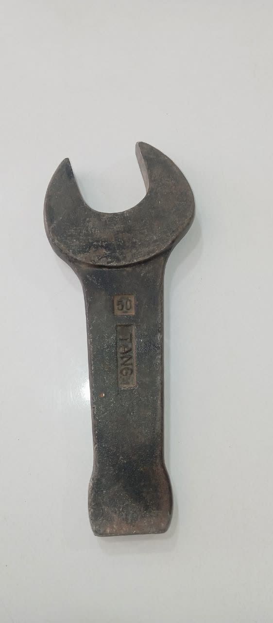 آچار تخت چکشی سایز : 50 میلیمتر - از آچار چکش خور برای کارهای که فوق سنگین است, استفاده می شود. - ساخته شده از فولاد با مقاومت بالا ( آلیاژ کروم وانادیوم ) - ساخته شده به وسیله ی فرایند فورج ( سخت کاری شده و حرارت دیده ) - کیفیت ساخت بالا - طراحی : صورت تخت - از آچار تخت چکشی در مواردی استفاده می شود که: - امکان باز و بسته کردن پیچ به راحتی وجود نداشته باشد. - لازم باشد که پیچ سفت شود. - لازم باشد پیچ هایی که خیلی سفت شده اند، باز شوند.