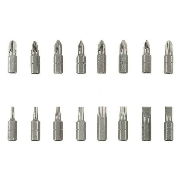 این ست شامل یک عدد رابط مگنتی نوک پیچ گوشتی 1/4 اینچ به طول 60 میلیمتر است که برای اتصال به میخی یا درایور استفاده می شود. همچنین شامل 16 عدد سر پیچ گوشتی به طول 25 میلیمتر است که عبارتند از: