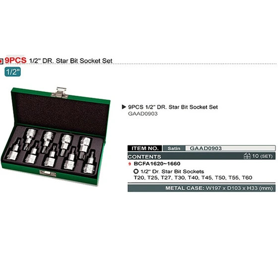جعبه بکس 9 پارچه آلن بکسی ستاره ای 1/2 درایو تاپ تول (TOPTUL) مدل GAAD0903