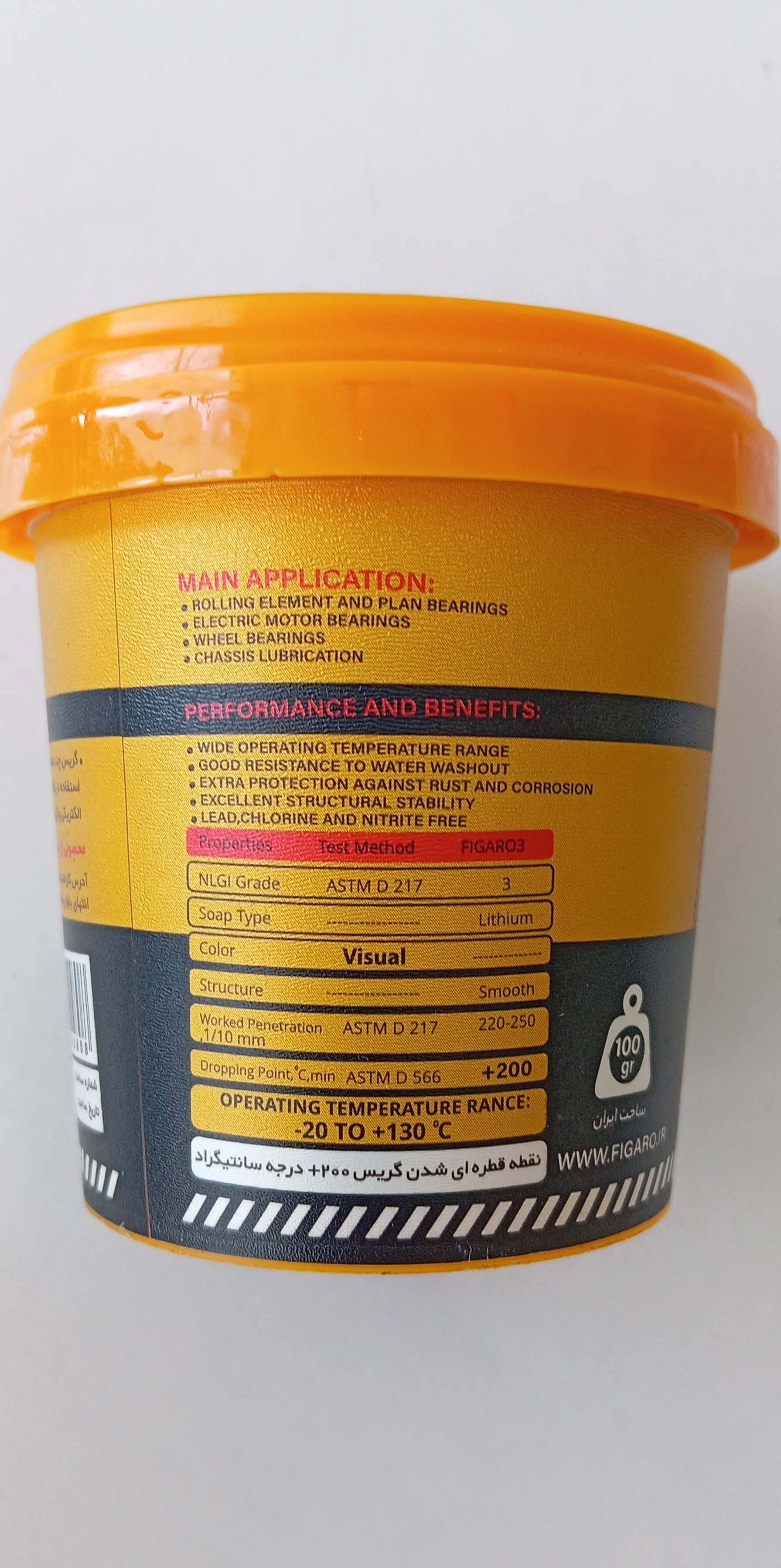 گریس لیتیوم فیگارو یک روانکار چند منظوره برای تمامی صنایع می باشد. پایداری مکانیکی طول عمر بالا و مقاومت خوب در برابر آب، از جمله خــواص این گریس است. همچنین این محصول قابلیت کارکرد را دارا می باشد. این گریس با نشان استاندارد ملی بر پایه روغن معدنی با کیفیت و غلیظ کننده صابون تولید شده است و دارای افزودنی های ضد سایش ضدخورندگی و آنتی اکسیدان است