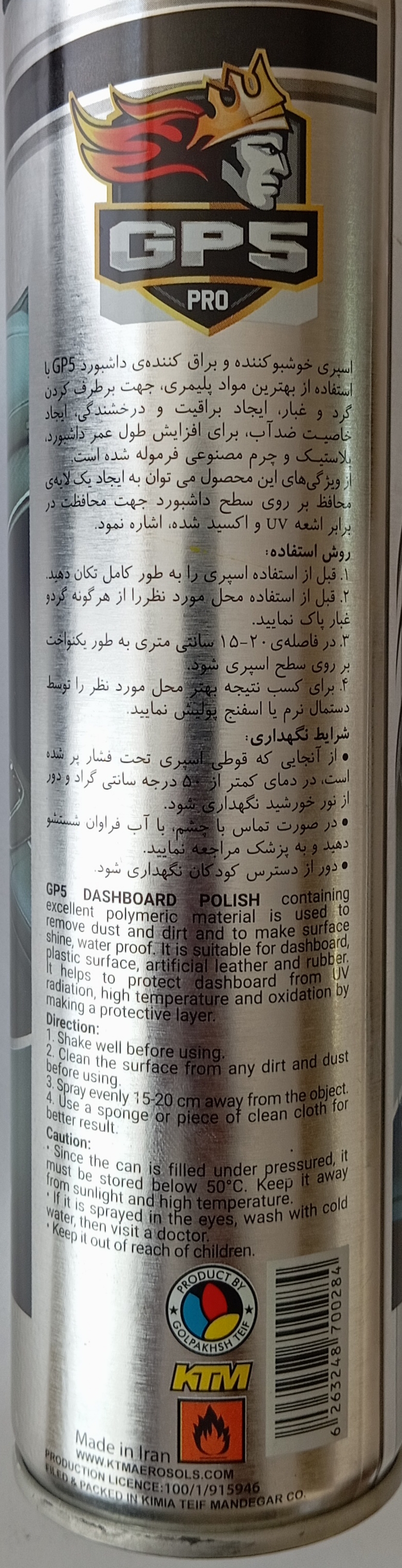 - محافظت در برابر عوامل مخرب: فرمولاسیون ویژه این محصول، با ایجاد یک سپر محافظ نامرئی، از داشبورد و سایر قطعات پلاستیکی و چرمی در برابر آسیبهای ناشی از نور خورشید (اشعه UV)، گرما و آلودگی هوا محافظت کرده و از پوسیدگی و رنگپریدگی آنها جلوگیری میکند.