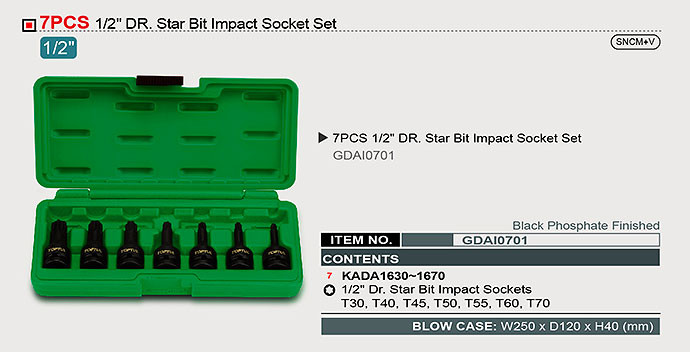 جعبه بکس 7 پارچه ستاره ای فشار قوی 1/2 اینچ تاپ تول مدل GDAI0701