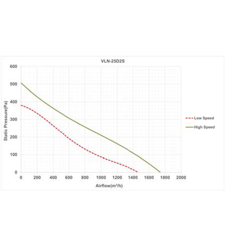 هواکش داخل کانالی با دبی (1750) m3/h دارای ناحیه مکش و تخلیه دایره ای شکلی به قطر (250)mm و برای نصب در کانال های گرد استفاده می شود. این محصول با استفاده از پلاستیک تزریق شده ساخته شده، به اتصال ارت مجهز بوده و ولتاژ کاری آن 220V است. همچنین موتور مورد استفاده در این محصول کلاس B است و برای کار در محیط هایی با دمای تا 40 درجه سانتی گراد مناسب است. نوع طراحی براکت های نگهدارنده فن به گونه ای است اجازه می دهد قسمت موتور و پروانه بدون بازکردن کانال های مجاور جدا شوند. فن دو سرعته بوده که انتخاب سرعت آن از طریق اتصال سیم های خروجی موتور انجام می شود. هواکش های VLN برای نصب در کانال های سیستم های تهویه فضاهای متوسط و بزرگ طراحی شده اند.