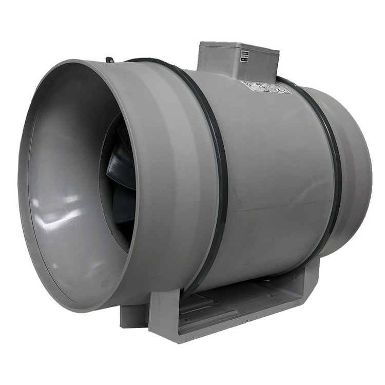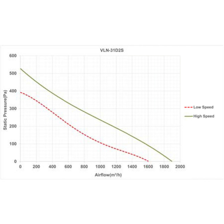 هواکش داخل کانالی با دبی (1900) m3/h دارای ناحیه مکش و تخلیه دایره ای شکلی به قطر(31)mm و برای نصب در کانال های گرد استفاده می شود. این محصول با استفاده از پلاستیک تزریق شده ساخته شده، به اتصال ارت مجهز بوده و ولتاژ کاری آن 220V- است. همچنین موتور مورد استفاده در این محصول کلاس B است و برای کار در محیط هایی با دمای تا 40 درجه سانتی گراد مناسب است. نوع طراحی براکت های نگهدارنده فن به گونه ای است اجازه می دهد قسمت موتور و پروانه بدون بازکردن کانال های مجاور جدا شوند. فن دو سرعته بوده که انتخاب سرعت آن از طریق اتصال سیم های خروجی موتور انجام می شود. هواکش های VLN برای نصب در کانال های سیستم های تهویه فضاهای متوسط و بزرگ طراحی شده اند.