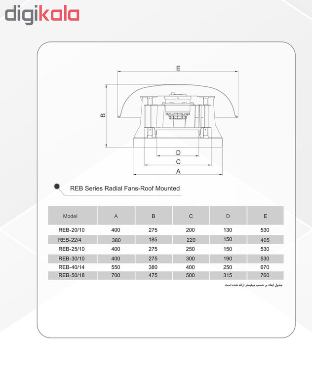 هواکش سقفی دمنده سری رادیال مدل REB-25.L4S