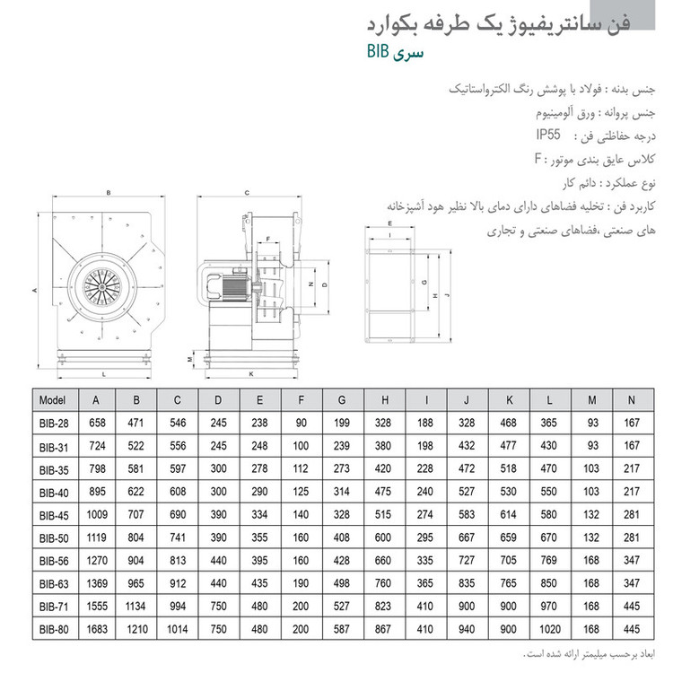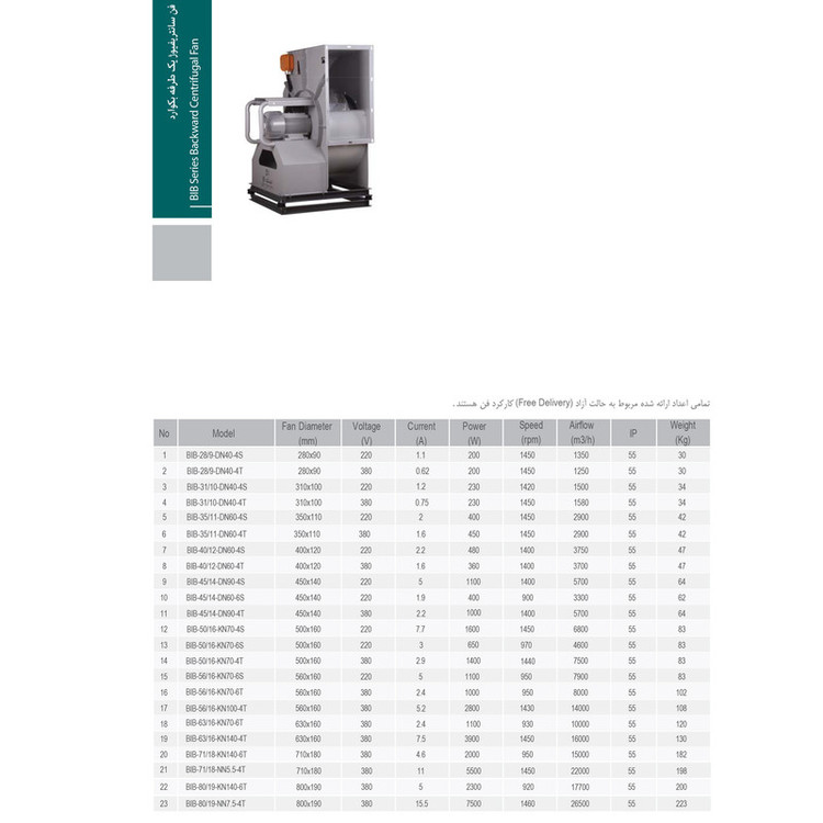 فن سانتریفیوژ بکوارد مدل BIB-28/9-DN40-4T معمولا جهت تخلیه هوا از فضاهای صنعتی و تجاری مورد استفاده قرار می گیرد. شکل خاص پروانه این فن باعث ایجاد فشار استاتیکی بالاتر نسبت به فن فوروارد شده لذا در سیستم های تخلیه هوا با میزان فشار استاتیکی بالاتر (به طور مثال سیستم های دارای فیلتر) انتخاب مناسب تری است. شرکت دمنده فن های بکوارد را با موتورهای اینترنال و اکسترنال تولید می کند. موتورهای اکسترنال (موتورهایی که بیرون پروانه قرار می گیرند) موتورهای معمولی هستند که گشتاور از طریق چرخش یک شفت به پروانه منتقل می شود. در مقابل، موتورهای اینترنال (موتورهایی که داخل پروانه قرار می گیرند) با گردش کل مجموعه روتور گشتاور را به پروانه منتقل می نمایند. برای کسب اطلاعات بیشتر در مورد مشخصات فنی این محصول می توانید به بخش نقد و بررسی و مشخصات فنی این محصول مراجعه بفرمایید.
