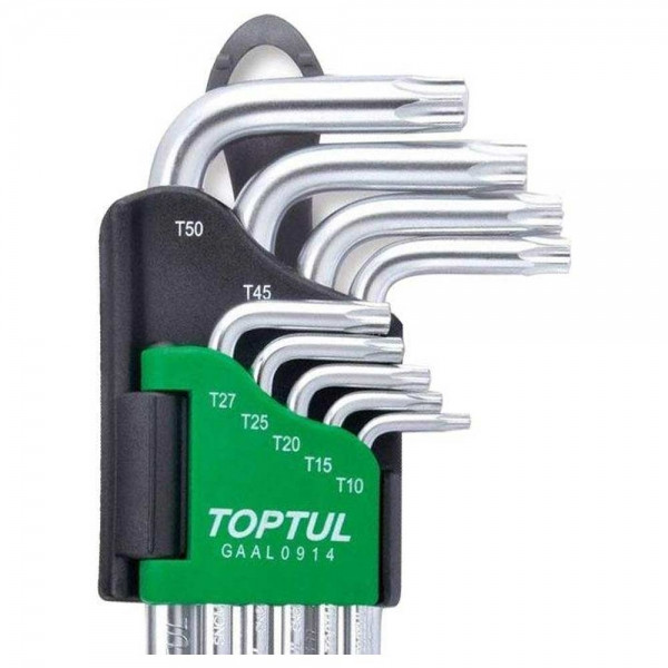 سری ۹ عددی آلن ستاره ای از سایز ۱٫۵ تا ۱۰ میلیمتر - محفظه نگهدارنده پلاستیکی آویز جهت نصب بر روی تابلوی ابزار - ارتفاع بلند مناسب برای کار با پیچهای با دسترسی سخت و دوردست
