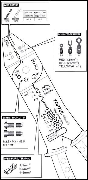 لخت کن: سیم لخت کن برای سیم با سایز بین 0.75 تا 6 میلیمتر مربع