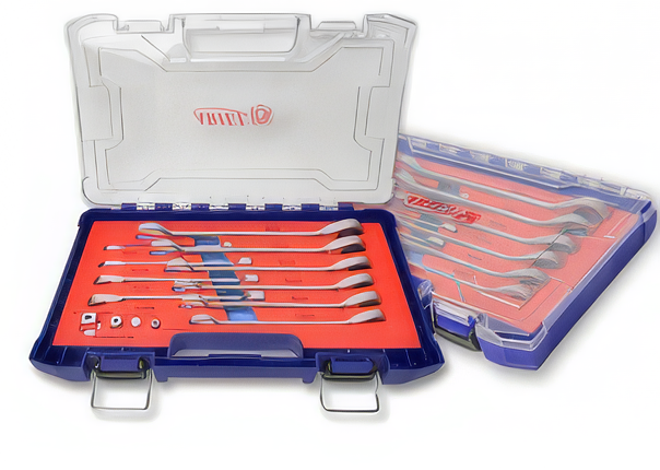 این مجموعه از فولاد کروم-وانادیوم مقاوم (Cr-V) ساخته شده و با روکش براق ضدزنگ پرداخت شده است. طراحی ارگونومیک و زاویه مناسب رینگ باعث میشود در فضاهای محدود بهراحتی کار کنید. این ست در یک جعبهی مقاوم و شکیل عرضه میشود تا حمل و نگهداری آن آسان باشد.