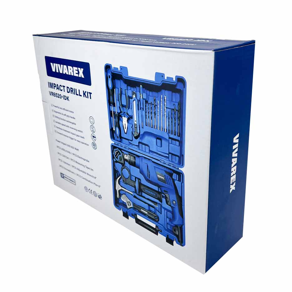 توان650واتنوع سه نظامآچاری - ۱۳ میلیمتریسوراخکاری چکشیداردتنظیم سرعت (دیمر)دارداقلام همراهپیچگوشتی چهارسو، پیچگوشتی دوسو، انبر دست، کاتر، فازمتر، متر 3 متری، چکش دو شاخ، آچار فرانسه، مته چوب، مته آهن، مته بتن، دسته جانبی، آچار سه نظام