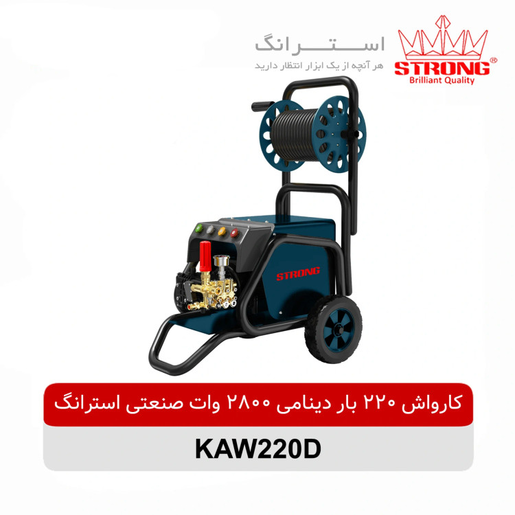کارواش 220 بار دینامی استرانگ مدل KAW220Dدارای قدرت موتوری برابر 2800 وات و سیم پیچ تمام مسی میباشد. این کارواش صنعتی دارای 4 عدد نازل برای حالات مختلف پاشش و فیلتر ورودی آب جهت جلوگیری از ورود رسوبات و آشغال ها به داخل پمپ میباشد. کارواش های صنعتی ابزاری قدرتمند و تخصصی برای شستشوی سطوح بزرگ، تجهیزات سنگین، و محیط های صنعتی هستند. این دستگاهها با استفاده از فشار بالای آب و گاهی مواد شوینده مخصوص، به تمیز کردن عمیق و کارآمد محیط های صنعتی کمک میکنند.