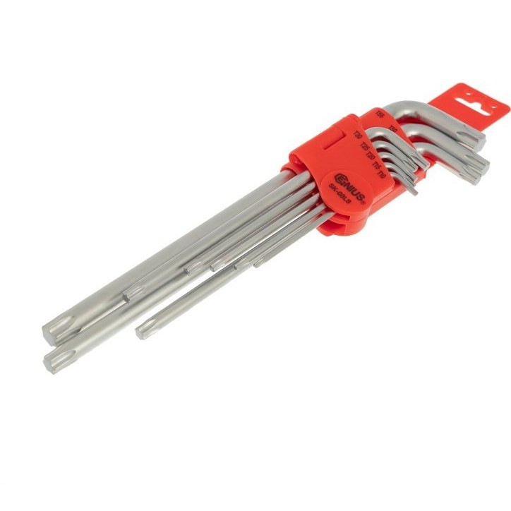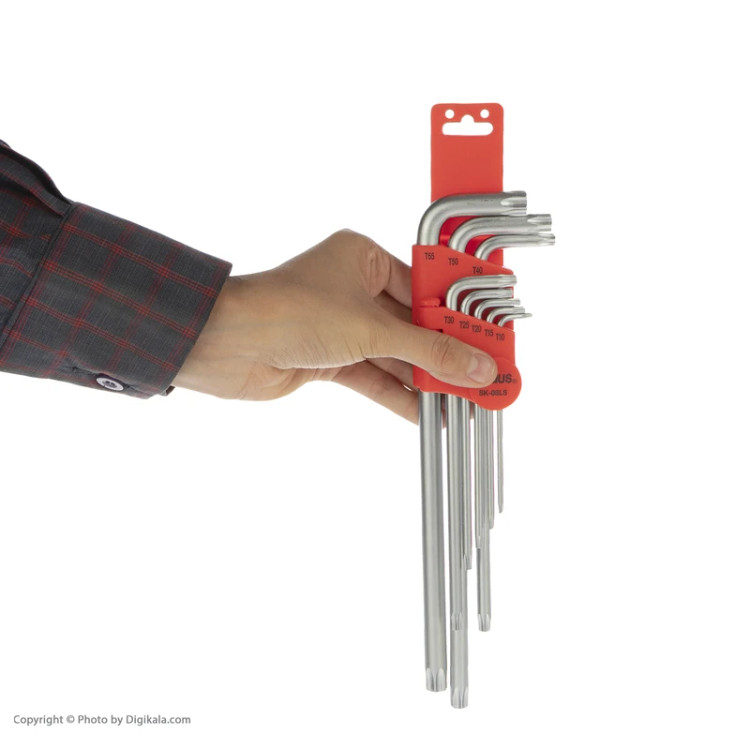 آچار آلن از آچارهای پرکاربرد برای انجام انواع کار است و یکی از مهمترین ابزارهاست. این آچار امکان لیز خوردن خراب شدن دندانههای پیچ را کمتر کرده و فشار کمی به آن وارد میکند. آچار داخل پیچ میشود کار کردن با آن راحتتر است. مجموعه 8 عددی آچار آلن جنیوس تولز مدل SK-08LS از استیل ساختهشده و 350 گرم وزن دارد. نوع دسته این آچار استاندارد بوده و این مزیت کار را برای شما راحت میکند. آچار آلن وسیلهای است L مانند با مقطع ششضلعی برای شل و سفت کردن پیچهای آلن و در انواع و اقسام سایزهای گوناگون و در شکلهای مختلف و بستهبندیهای متنوعی یافت میشود. شماره این آچارها T-10 , T-15 T-20 , T-25 , T-30 , T-40 , T-52 , T-55 است. که در زمان انتخاب خرید به آنها حتماً توجه کنید.